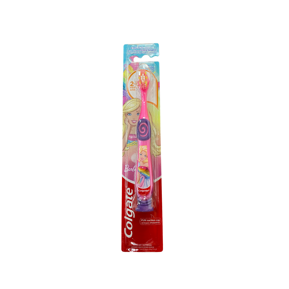 Colgate Toothbrush Extra Soft Kids Barbie 2-5 Years Toothbrush 1 Piece is extra-soft for effective and gentle cleaning. It is designed with attractive characters to help engage kids and encourage them to brush.