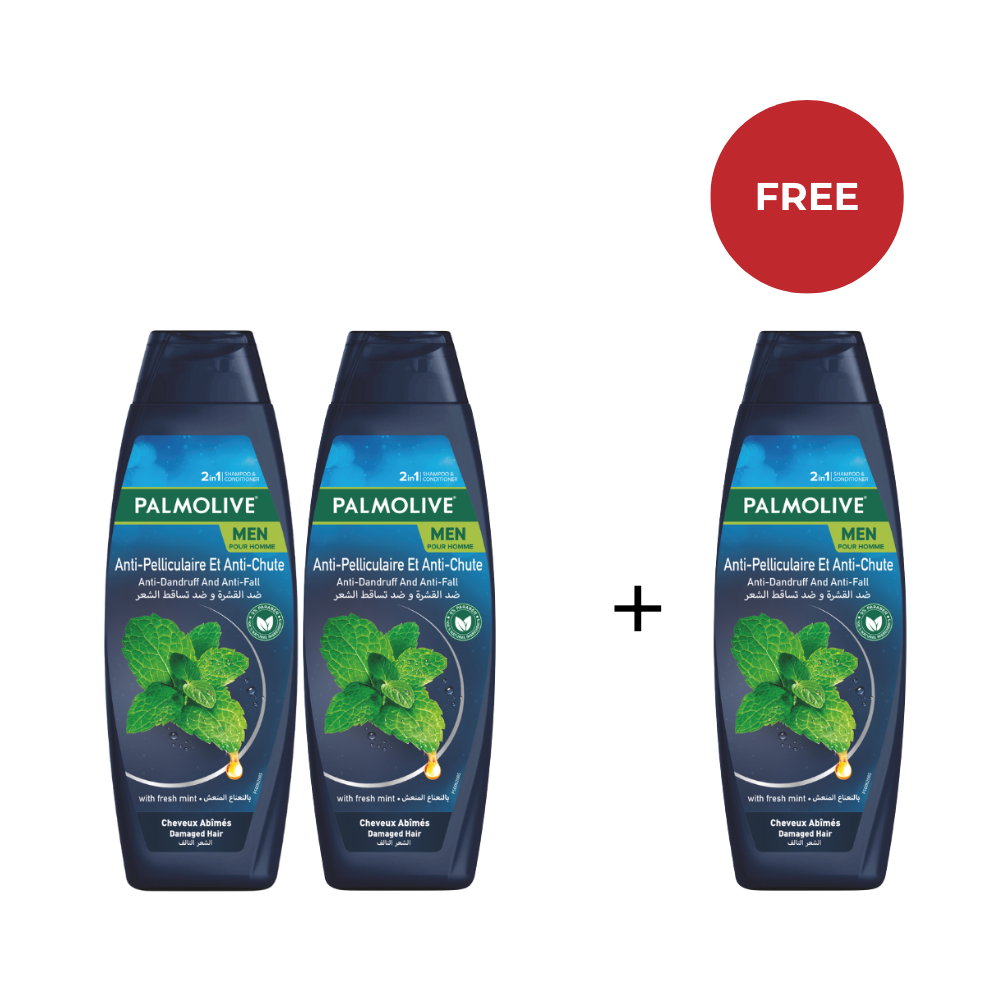 2+1 Free Palmolive Shampoo Anti-Dandruff & Anti-Fall For Damaged Hair With Fresh Mint 600 ML