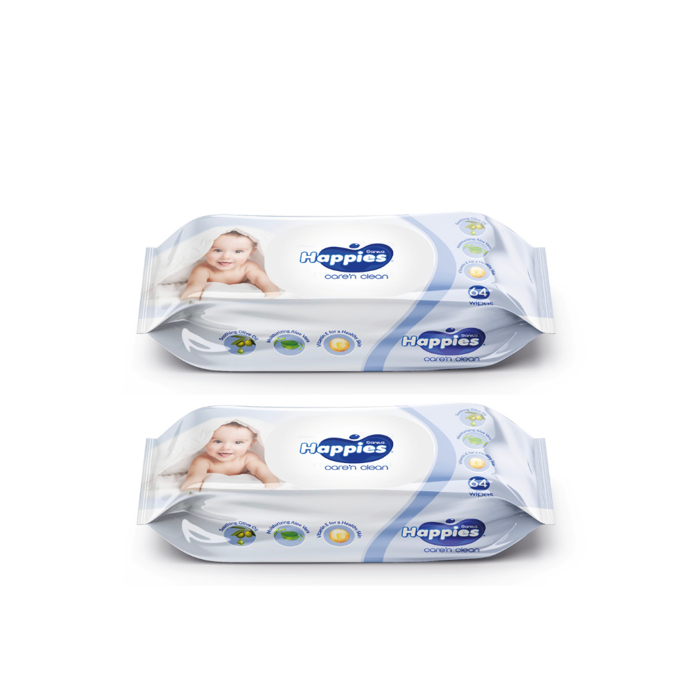2x Happies Wet Wipes Care & Clean