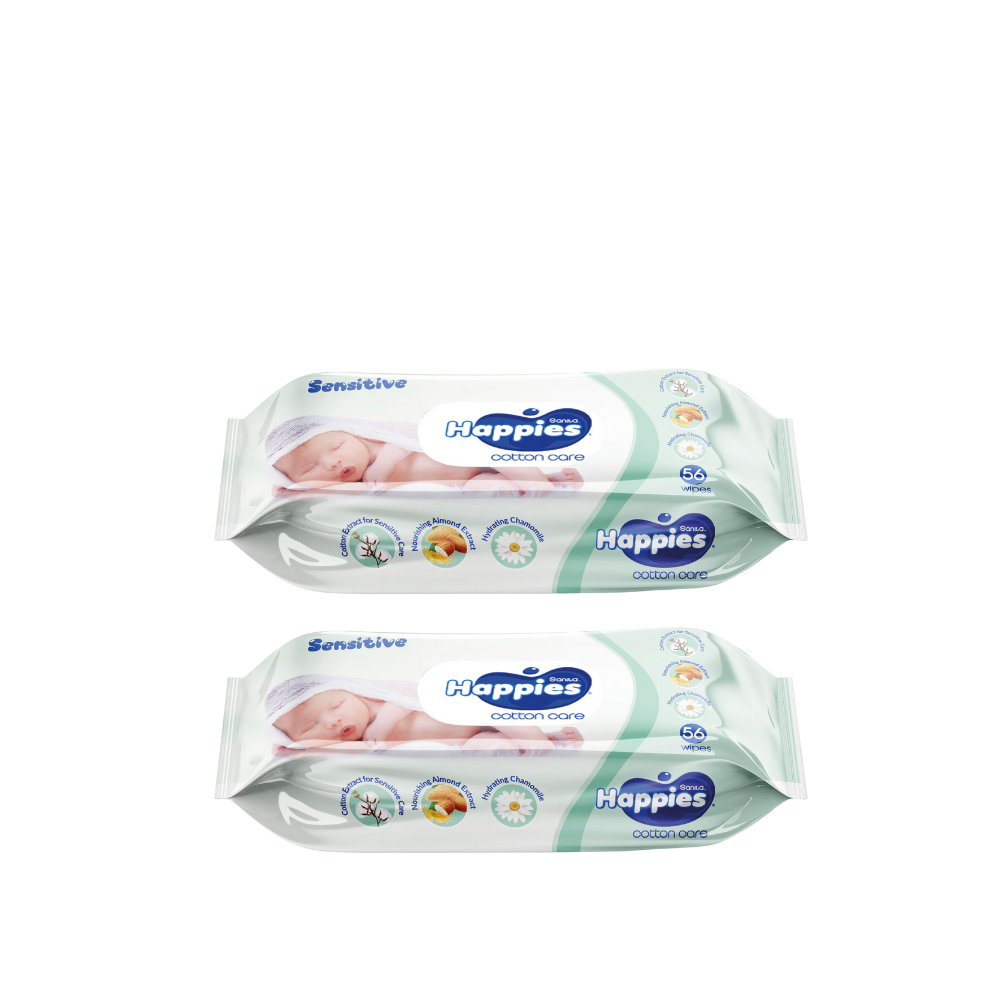 2x Happies Wet Wipes Cotton Care Sensitive
